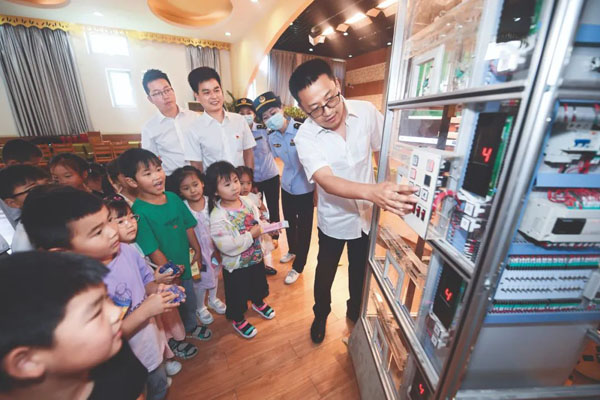 2022年6月8日,浙江省湖州市特種設(shè)備檢測研究院和長興縣李家巷市場監(jiān)督管理所的工作人員來到校園開展特種設(shè)備(電梯)安全教育。攝影/新華社記者 徐昱