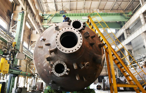 4月12日,工人在哈電集團(tuán)哈爾濱鍋爐廠有限責(zé)任公司車間內(nèi)生產(chǎn)作業(yè)。攝影/新華社記者 王建威
