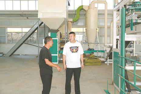 薛志龍(右)到檸條飼料加工廠了解生產(chǎn)情況。