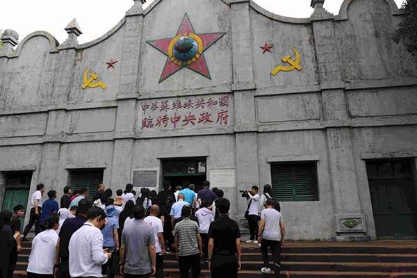 11月7日,在500余平方米的祠堂內(nèi),來自江西中央蘇區(qū)、閩西、湘贛、贛東北、湘鄂西、瓊崖等蘇區(qū)的代表和紅軍、全總、全國海員工會的代表共610人參加了大會,大會宣告中華蘇維埃共和國臨時中央政府成立。