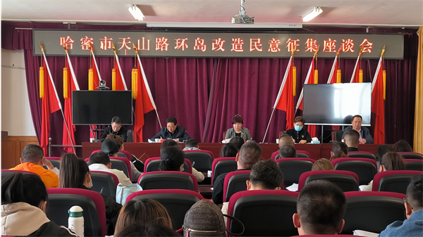 天山北路環(huán)島改造民意征集座談會。哈密人大供圖