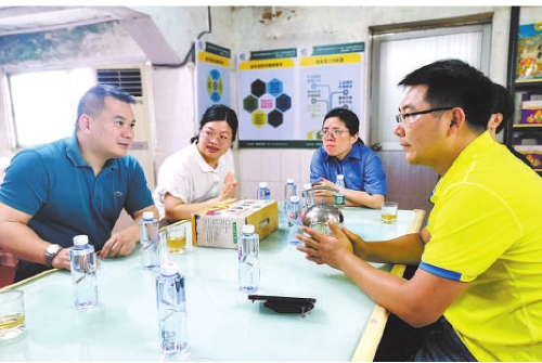 臺(tái)山市檢察院檢察長(zhǎng)張維良(左)前往綠稻農(nóng)場(chǎng),就檢察機(jī)關(guān)服務(wù)鄉(xiāng)村振興征求陳奭榮(右)的意見(jiàn)建議。
