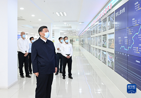 6月5日至6日,中共中央總書(shū)記、國(guó)家主席、中央軍委主席習(xí)近平在內(nèi)蒙古巴彥淖爾考察,并主持召開(kāi)加強(qiáng)荒漠化綜合防治和推進(jìn)“三北”等重點(diǎn)生態(tài)工程建設(shè)座談會(huì)。這是6日上午,習(xí)近平在河套灌區(qū)水量信息化監(jiān)測(cè)中心考察。新華社記者 申宏 攝