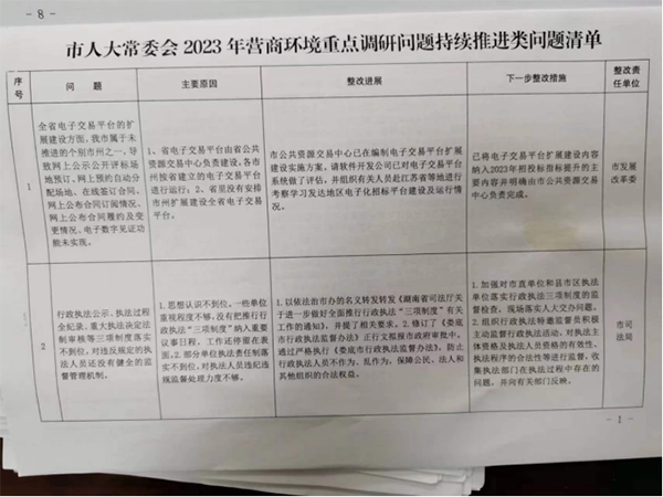 婁底市人大常委會2023年?duì)I商環(huán)境重點(diǎn)調(diào)研問題持續(xù)推進(jìn)類問題清單。
