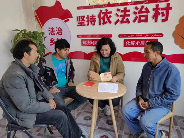 “今年我們持續(xù)推進(jìn)人大代表參與社會(huì)治理,推行‘人大代表+調(diào)解員’機(jī)制,把人大代表培育為學(xué)法用法示范戶、法律明白人,發(fā)揮法治宣傳員和矛盾調(diào)解員作用,形成了村中有站、小組有戶、巷道有人、輻射周邊的鄉(xiāng)村治理格局?!卑⒖颂K地區(qū)人大工委機(jī)關(guān)駐尤喀克巴里當(dāng)村“訪惠聚”工作隊(duì)副隊(duì)長(zhǎng)石強(qiáng)說。