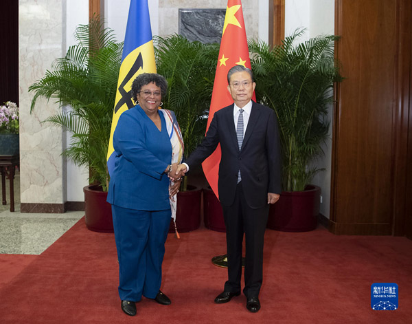 6月27日,全國(guó)人大常委會(huì)委員長(zhǎng)趙樂(lè)際在北京會(huì)見(jiàn)巴巴多斯總理莫特利。新華社記者李濤 攝