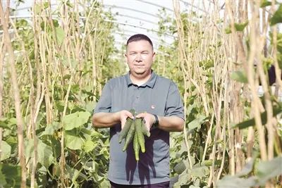 6月15日清晨,艾克熱木·買買提明在蔬菜拱棚合作社采摘黃瓜。巴音郭楞日?qǐng)?bào)記者 陳飛 攝