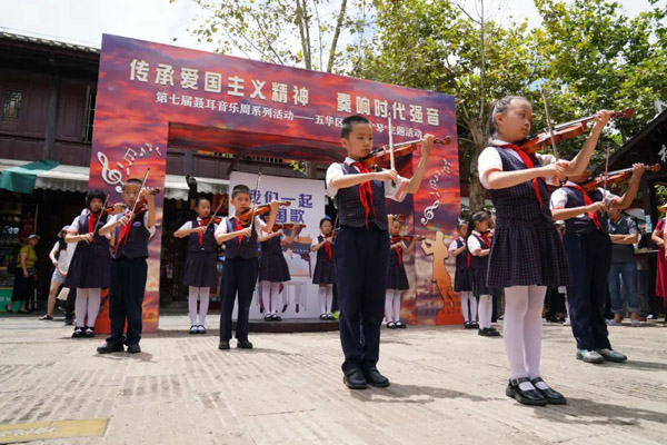 2023年7月18日,學(xué)生用小提琴演奏聶耳作曲的《賣(mài)報(bào)歌》。當(dāng)日,第七屆聶耳音樂(lè)周系列活動(dòng)在昆明市聶耳故居舉行。攝影/中新社記者劉冉陽(yáng)