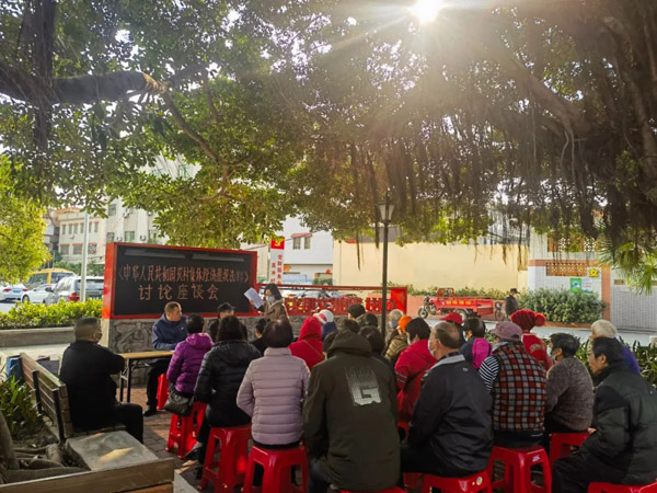 此后,英南村、直沖村、江翠社區(qū)等立法聯(lián)系單位因地制宜,將立法意見(jiàn)征集會(huì)設(shè)在榕樹(shù)下。紅色橫幅一展,遠(yuǎn)近村民圍坐,在榕蔭帶來(lái)的清涼中,完成最樸素、最原汁原味的立法意見(jiàn)征集,“榕樹(shù)頭議事”也成為江海基層立法聯(lián)系點(diǎn)的特色“IP”。