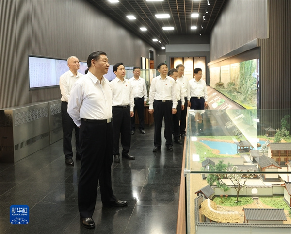 7月29日,中共中央總書記、國(guó)家主席、中央軍委主席習(xí)近平在四川考察結(jié)束返京途中,來到陜西省漢中市考察。這是習(xí)近平參觀漢中市博物館有關(guān)歷史文物展陳。新華社記者 鞠鵬 攝